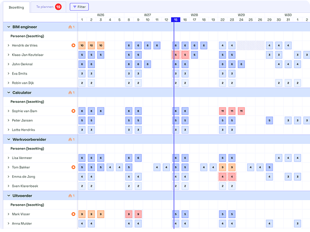 Ontdek SolutionMaak activiteiten via de planning voor alle projectpartners inzichtelijk en up-to-date. De projectpartner ziet met hoeveel mensen wanneer, waar en waaraan gewerkt moeten doen. Ook hebben projectpartners inzicht in de voortgang van de voorafgaande werkzaamheden. Zo komt niemand meer voor niets naar de bouwplaats en is wachten verleden tijd.