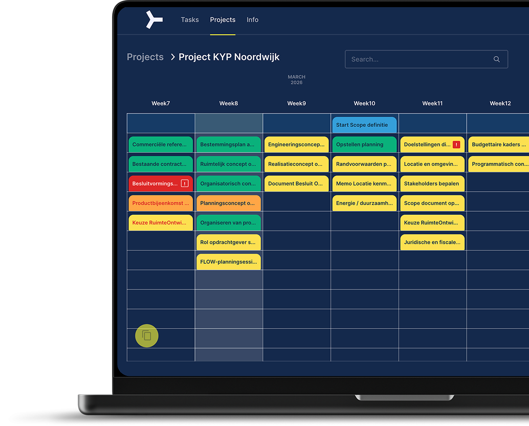 Ontdek SolutionMaak eenvoudig een planning met meerdere bouwdelen, verdiepingen of fases van een groot project. Alles inzichtelijk in één overall planning. Een kantoor, woonwijk of meerdere appartementencomplexen? KYP is hét start- en eindpunt van jouw project(en).