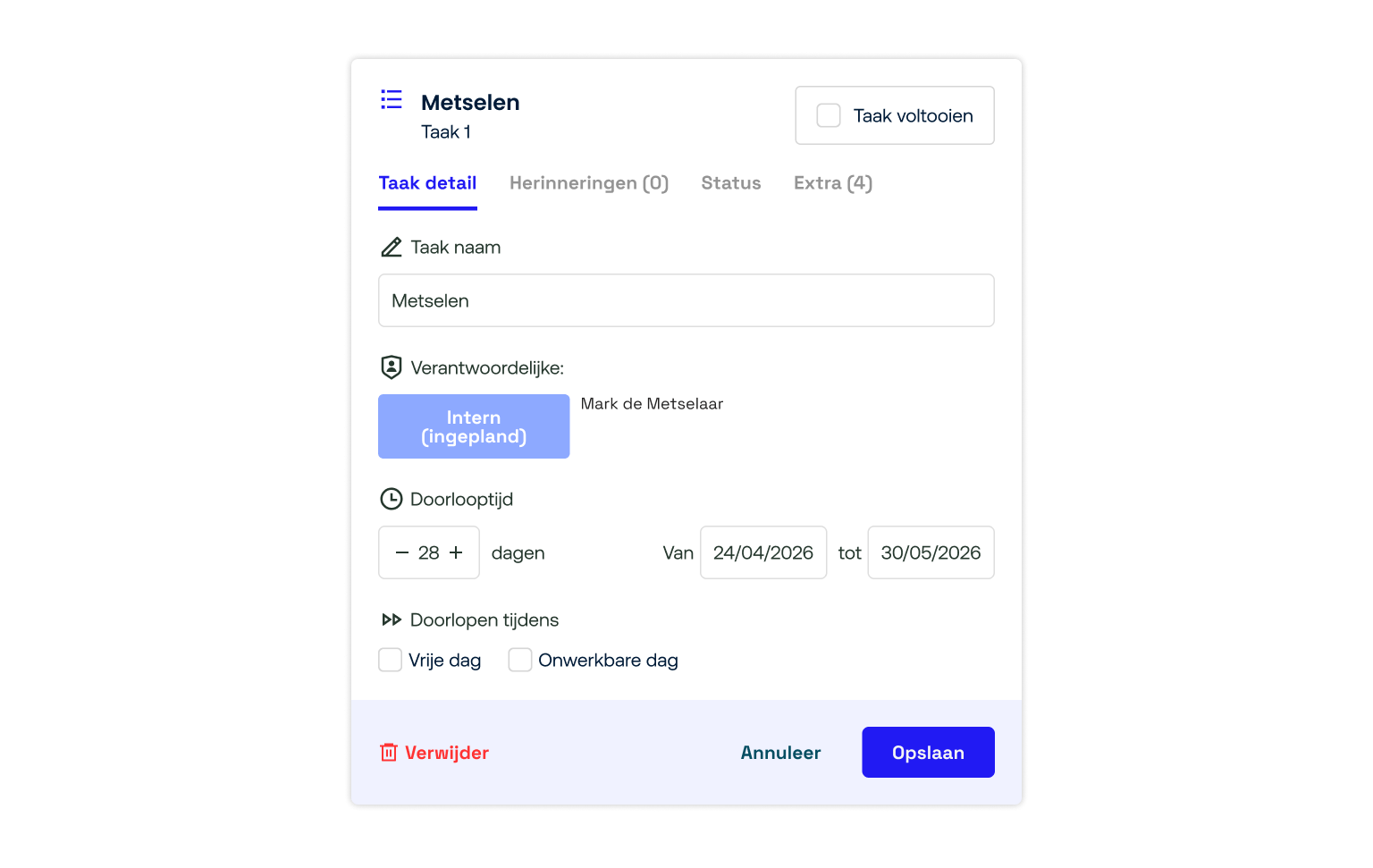 Binnenkort kan je al je handige collega’s, van metselaar, maatvoerder tot timmerman koppelen aan project activiteiten. Laat even weten als we je op de hoogte moeten houden.