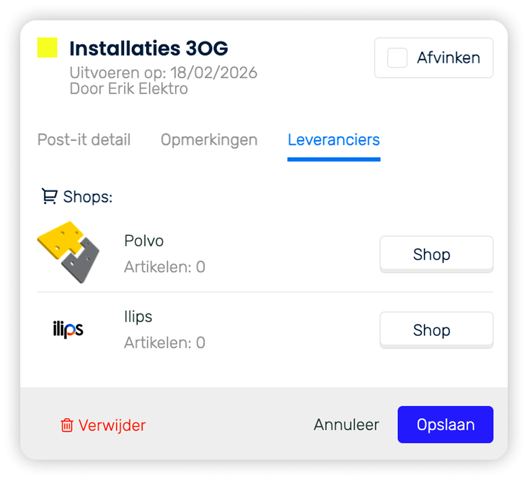 Met de koppeling tussen KYP en leveranciers zoals Polvo en Wagenborg bestel je materialen rechtstreeks vanuit je planning. Je ziet wat je nodig hebt, wanneer het nodig is en zet dit direct door naar je leverancier. Zo sluit je inkoop naadloos aan op je uitvoeringsplanning, voorkom je dubbele handelingen en minimaliseer je fouten. Minder schakelen, Beter Bouwen.