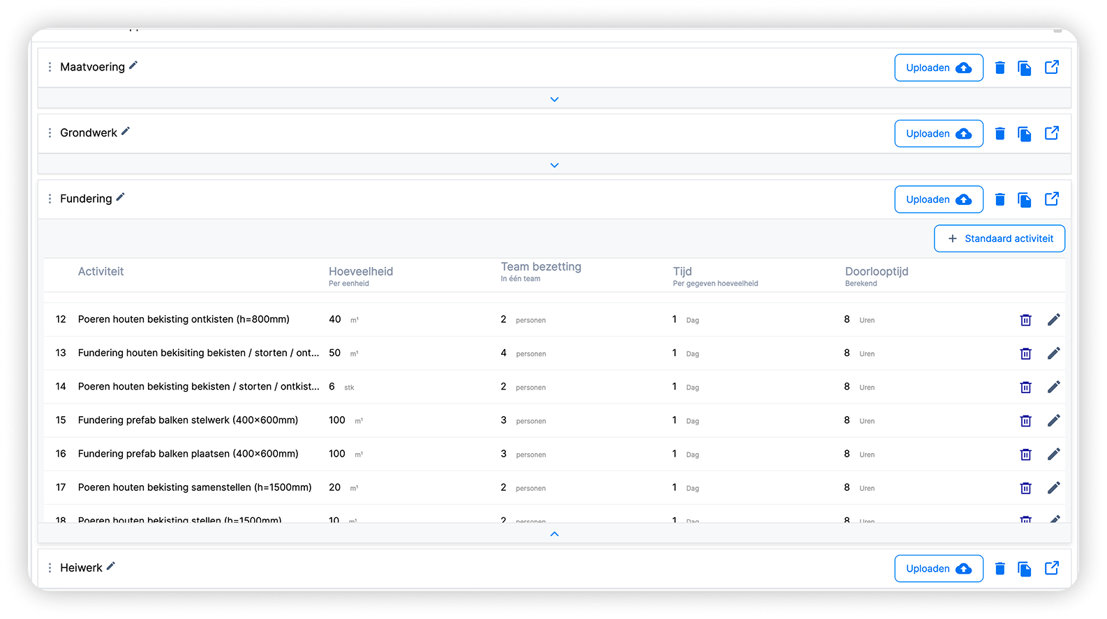 When standard activities are used in planning, everyone on site understands what is expected and how work is structured. This increases clarity and improves coordination. KYP provides industry-specific activity libraries. You can adapt these to your own company standards, enabling consistent data collection across projects. Standardized input creates predictable output.