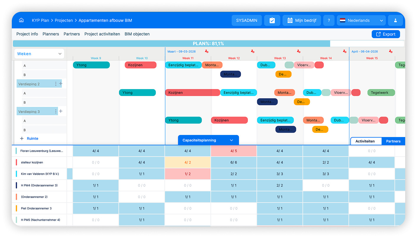 In PLAN, you link the required capacity directly to the availability of your partners. Together, you create a realistic schedule that everyone can truly commit to. This turns “a deal is a deal” into reality.